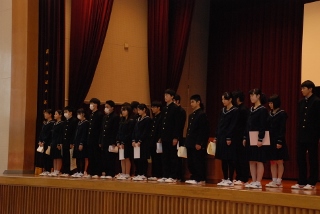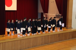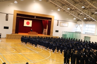 3学期終業式が行われました 2019年3月22日 3月22日(金)、本校体育館で3学期終業式が行われました。 平成30年度の締めくくりとして、田中校長は卒業生が残してくれた輝かしい歴史を今後も引き続いていくことを期待して、1、2年生を激励しました。