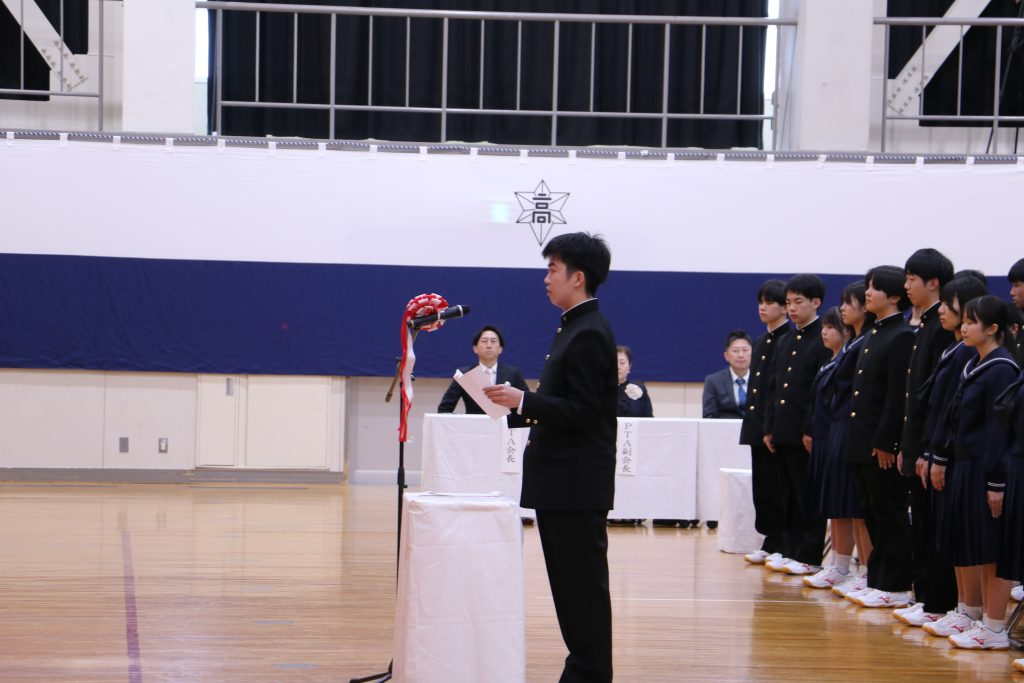 令和8年度入学式が行われました 2026年4月12日 4月8日(火)、令和8年度入学式が本校体育館で行われ、296名の入学が許可されました。山本校長の式辞の後、新入生代表の羽山さんから誓いの言葉が述べられました。その後、新入生の担任・副担任が紹介され、ロングホームが実施されました。