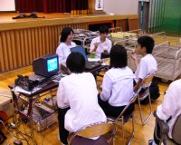 プレゼンテーションのリハーサルの様子です。この時点では、まだまだ未完成の部分があり、委員一同焦りがつのっていました。 | リハーサルの合間に打ち合わせ。アイデアは全員で出し合いました。全員が真剣そのものです。 | 当日午前中のミーティングの様子です。 プレゼンテーションの成功はオープンクールの成功に直結するだけに、緊張感が高まりました。 |