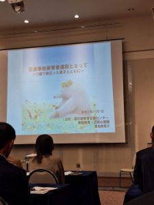 講師に(公社)福井被害者支援センター事務局長 宮地美貴子氏をお招きし、「交通事故被害者遺族となって~12歳で旅立った息子とともに~」という演題で講演が行われました。ご子息を亡くされた保護者の方の思いが会場に伝わり、涙ぐむ方もいらっしゃいました。また改正道路交通法についても福井県警本部の鈴木貴紀氏よりお話があり、改めて交通安全の大切さを感じました。自転車乗車時のヘルメット着用を是非お願いします。ながらスマホは絶対にしないようお伝えください。さらに三国高校PTAと武生東高校PTAが、各高校におけるPTA活動の実践の様子をそれぞれ発表しました。