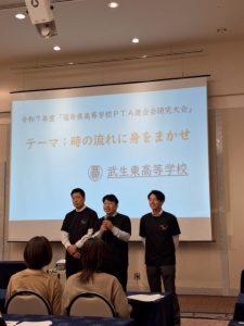 令和7年11月1日(土)13:30~ホテルフジタ福井にて「県高P連研究大会」が開催されました。