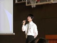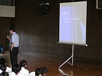 2年生の進路学習のテーマでもある「大学の学部・学科」研究について話がありました。 スライドを使っての説明に加え、教育実習生の4名からの大学生活の感想を述べてもらいました。 |