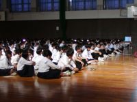 3年生は、まず土曜日の特別講義やこれからの受験勉強への取り組み方について学年主任から話が ありました。引き続いて昨年度の3年担任から、昨年度の3年生の事例を、普段の学習への取り組み や生活態度を中心に話してもらいました。 3年生諸君も学習に対する心構えを振り返る良い機会になったようです。 |