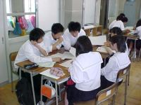 1年生は職業調べを実施しました。グループになって熱心に作業をしている様子がうかがえます。 |